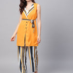Solid Yellow Jacket & Stripped Palazzo Clothing Set