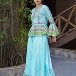 Skyblue Rayon Printed Peplum Top Palazzo Set