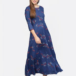 Blue & Cobalt Printed Half Sleeve Cotton Maxi Dress