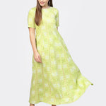 Peach Printed 3/4Th Sleeve Rayon Maxi Dress
