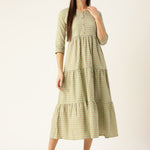 Green Ethnic Motifs Printed Round Neck Cotton Maxi Dress