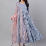 Light Grey Solid Solid Round Neck Cotton Maxi Dress