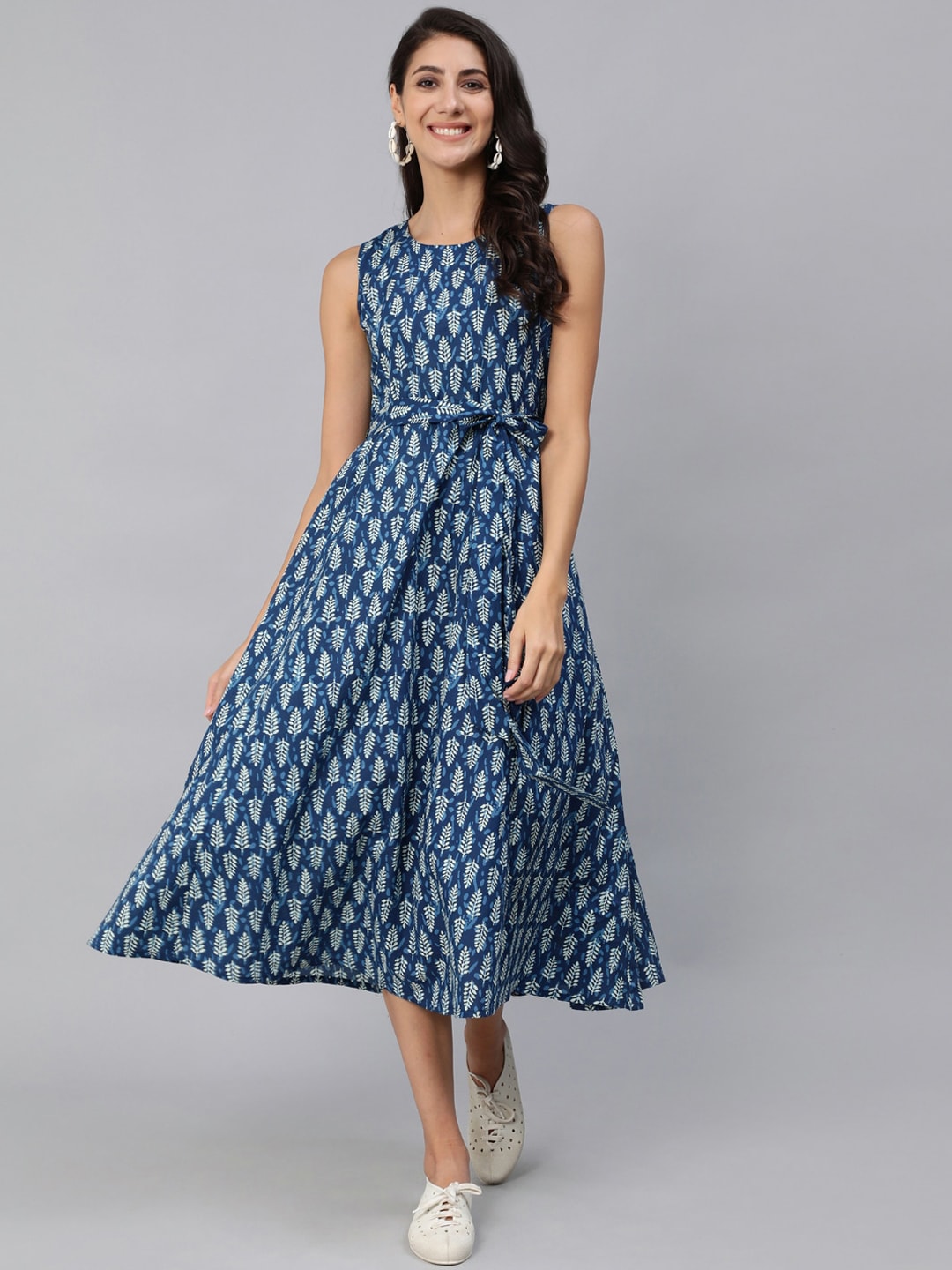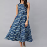Women Blue Printed Sleeveless Dress