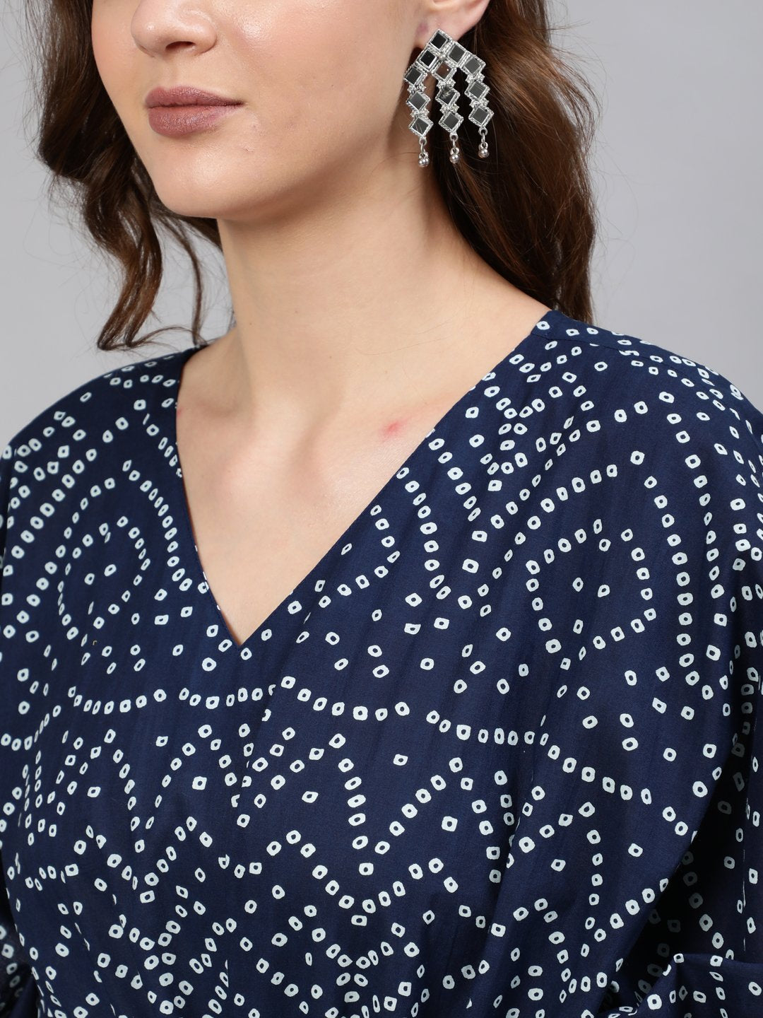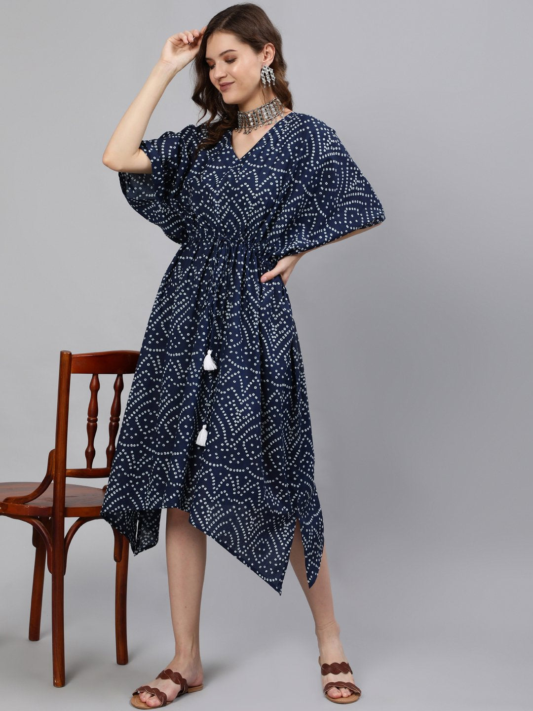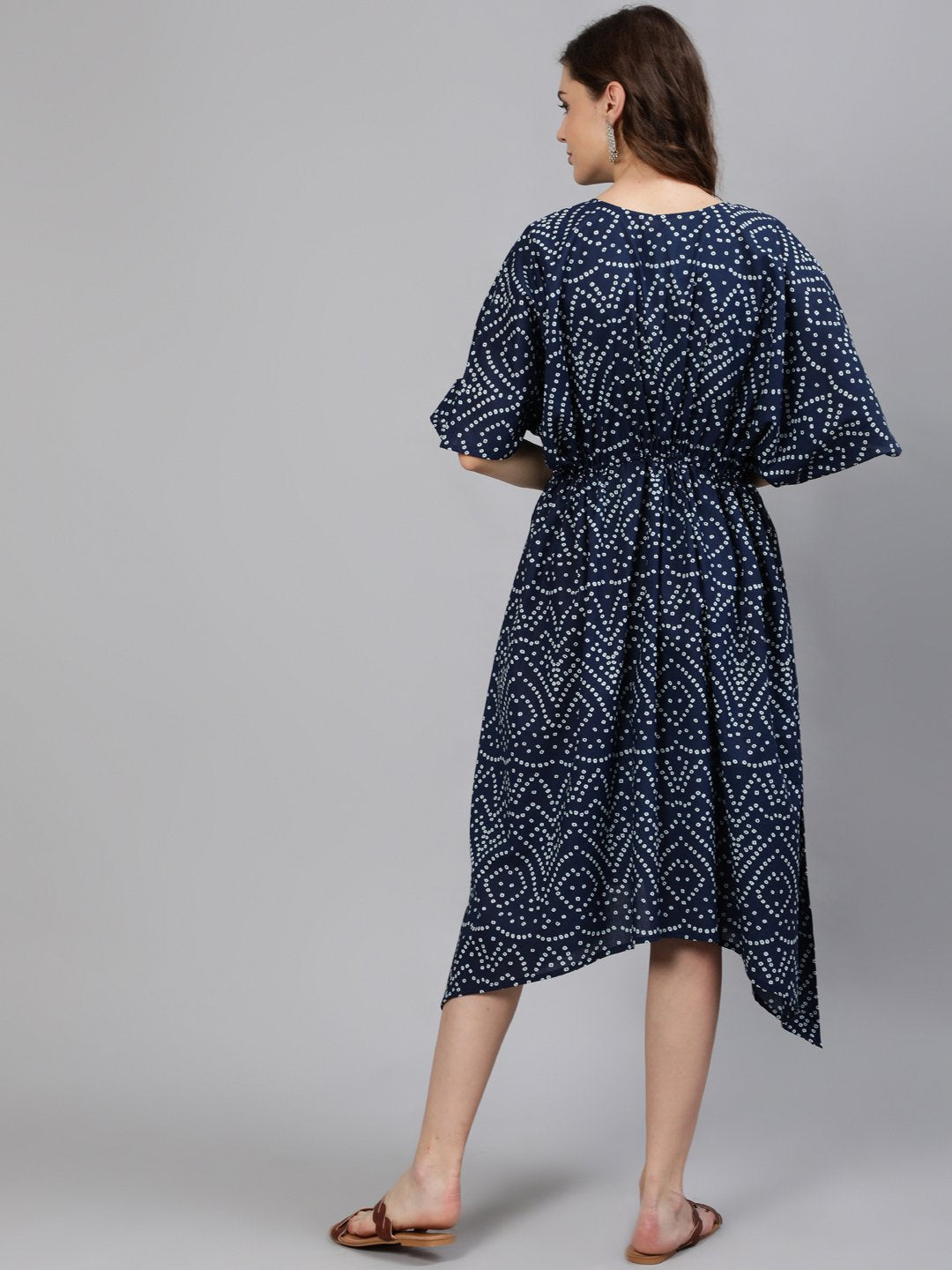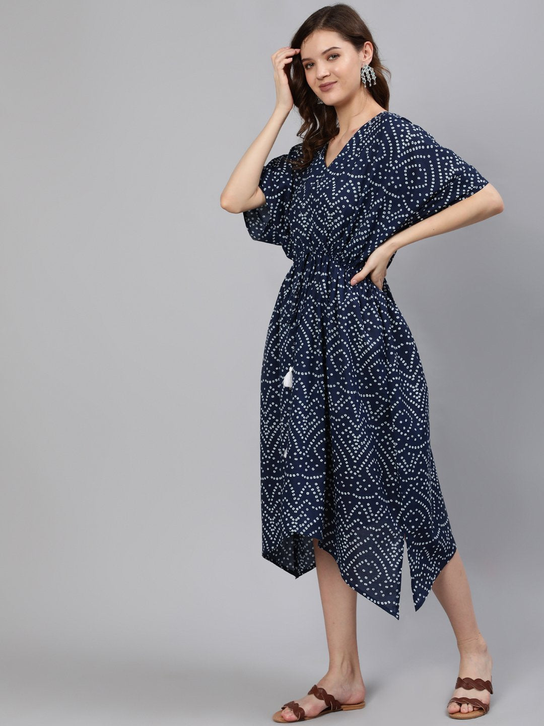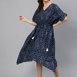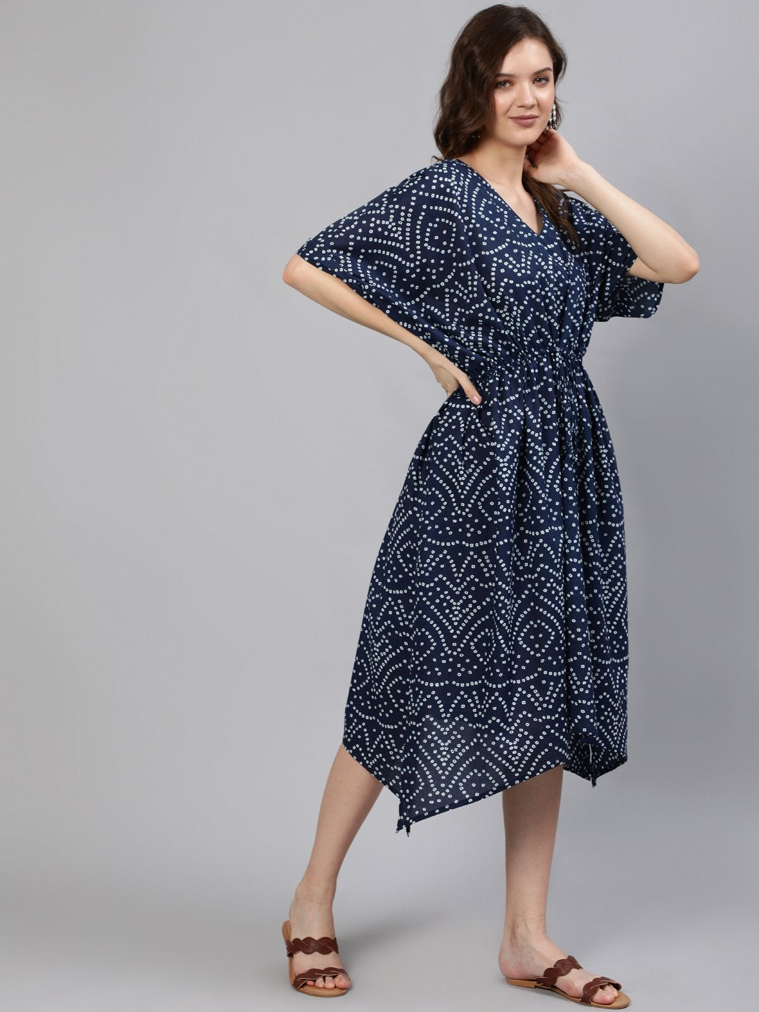 Women Navy Blue Printed Kaftan Dress