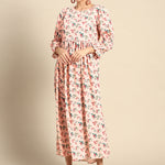 Peach Floral Printed Dress With Three Quarter Sleeves