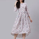 Off White Printed Flared Dress With Three Quarter Sleeves