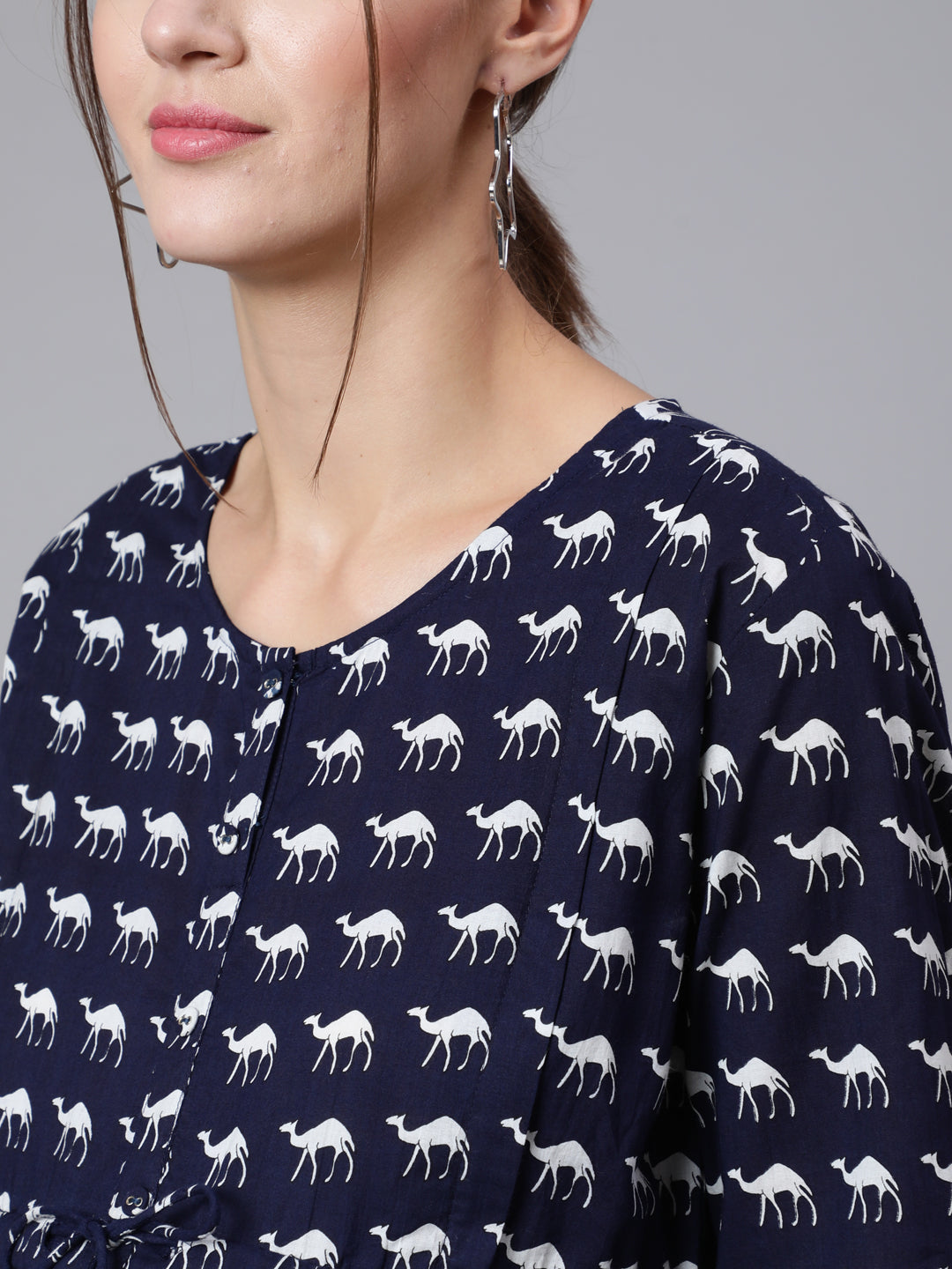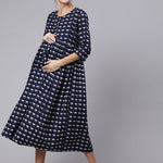 Navy Blue Ethnic Printed Flared Maternity Dress