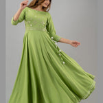 Mirror Work Flared Full Length 3/4 Sleeve Round Neck Rayon Dress