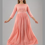 Mirror Work Flared Full Length 3/4 Sleeve Boat Neck Rayon Dress