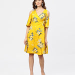 Printed Assymetrical A-Line Knotted Belt Style Dress With 3/4Th Cold-Shoulder Sleeve
