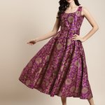 Purple Jacquard Floral Self-Belt Anarkali Maxi