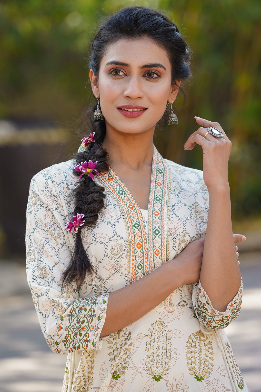 Ivory Rayon Printed Flared Dress