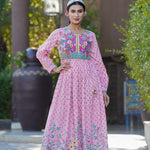 Pink Rayon Printed Tiered Dress with Tie-up Dori