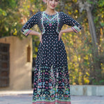 Black Rayon Printed Anarkali Dress with Tie-up Dori