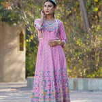 Pink Rayon Printed Anarkali Dress with Tie-up Dori