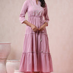 Blushpink Bubble Crepe Embroidered Tiered Dress with Tie-up Dori