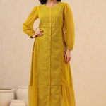 Women`s Mustard Georgette Embroidered A-Line Dress