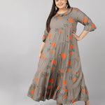 Rayon Floral Print Flared Ethnic Gown (Grey)