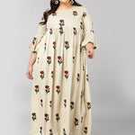 Rayon Floral Print Flared Ethnic Gown (Off-White)