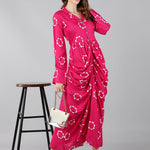 Rayon Printed A-Line Dress (Pink)
