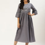 Grey & White Embroidered Yoke design A-Line Dress