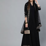 Black Embroidered Fit and Flare Dress With Sequinned Dupatta