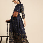 Navy Blue & Yellow Ethnic Motifs Printed Maxi Dress