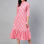 Pink & Off White Printed A-Line Dress