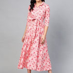 Coral Pink & White Floral Printed Maxi Dress