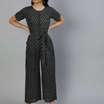 Green Printed Jumpsuit With Side pockets