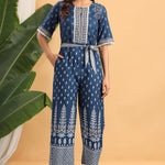 Indigo Rayon Printed Ethnic Jumpsuit with Belt