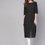 Black Printed Half Sleeves Multi Slit Straight Cotton Kurta