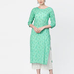Fern Green Floral Printed Straight kurta with Round neck & 3/4 sleeves