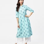 Blue Printed 3/4Th Sleeve Cotton Anarkali Kurta