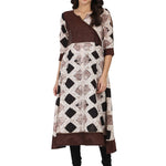 Black Printed 3/4Th Sleeve Cotton Slub Angrakha Kurta