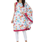 White Printed One Side Sleeve Rayon Flared Kaftan Kurta