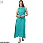 Blue Sleeveless Cotton A-Line Kurta