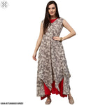 Grey Printed Sleeveless Cotton Assymetric Double Layer Kurta