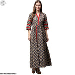 Grey Printed 3/4Th Sleeve Cotton Anarkali Kurta