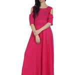 Pink 3/4Th Sleeve Cotton Anarkali Kurta