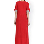 Women Printed Red Short Sleeves V-Neck Cotton A-Line Kurta