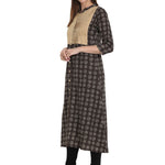 Women Solid Black Three-Quarter Sleeves Mandarin Collar Cotton A-Line Kurta