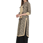 Women Printed Grey Three-Quarter Sleeves Mandarin Collar Cotton Straight Kurta
