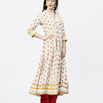 White Prined 3/4Th Sleeve Angrakha Style Anarkali Kurta