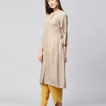 Solid Grey 3/4Th Sleeve Cotton A-Line Kurta