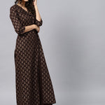 Dark Brown Printed Kurta With V-Neck And 3/4 Sleeves