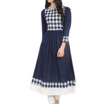 Blue Printed 3/4Th Sleeve Cotton Anarkali Kurta