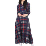 Navy Blue Check Printed 3/4Th Sleeve Crepe A-Line Kurta