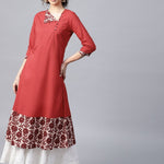 Maroon 3/4 Sleeve Cotton A-Line Kurta