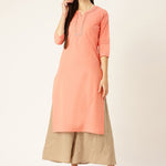 Pink Three-Quarter Sleeves Straight Solid Yoke Design Cotton Kurta
